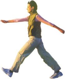 我们所推荐的适度强力行走,就好像鸡蛋滚动,行走时把重心由脚后跟逐渐移向大拇指,即沿着由脚后跟→脚外侧→小脚趾部位→脚大拇指的顺序接触地面。在脚趾全部落地后,用脚大拇指用力蹬踏地面并把另一只脚踢出去,同时后脚跟要连贯地踏出,再沿着脚后跟到脚大拇指的顺序蹬踏地面,如此循环。